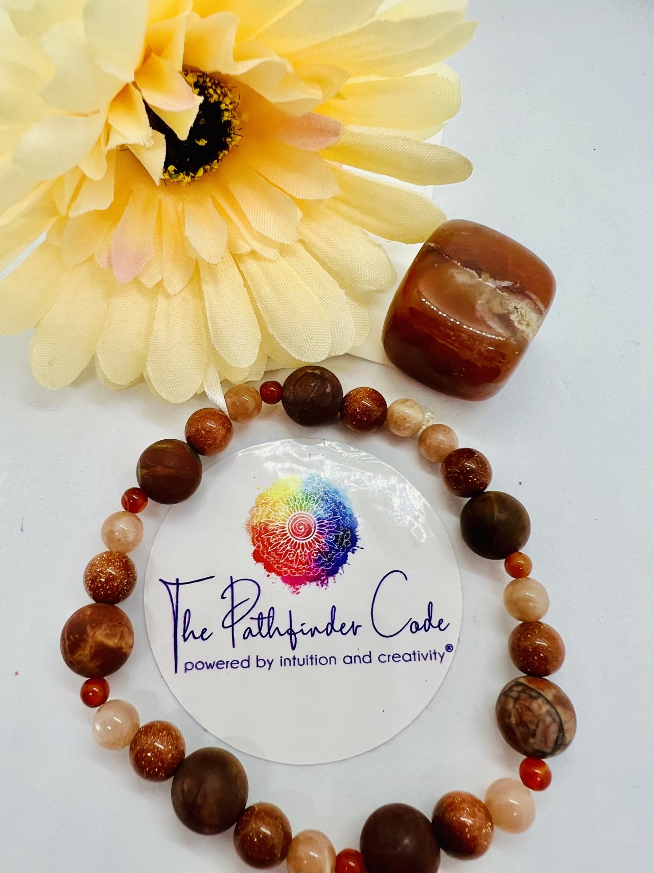 GEMSTONE BRACELET: STONE OF AMBITION/HAPPINESS/STRENGTH GEMSTONE BRACELET- Indian agate, goldstone, sunstone and carnelian