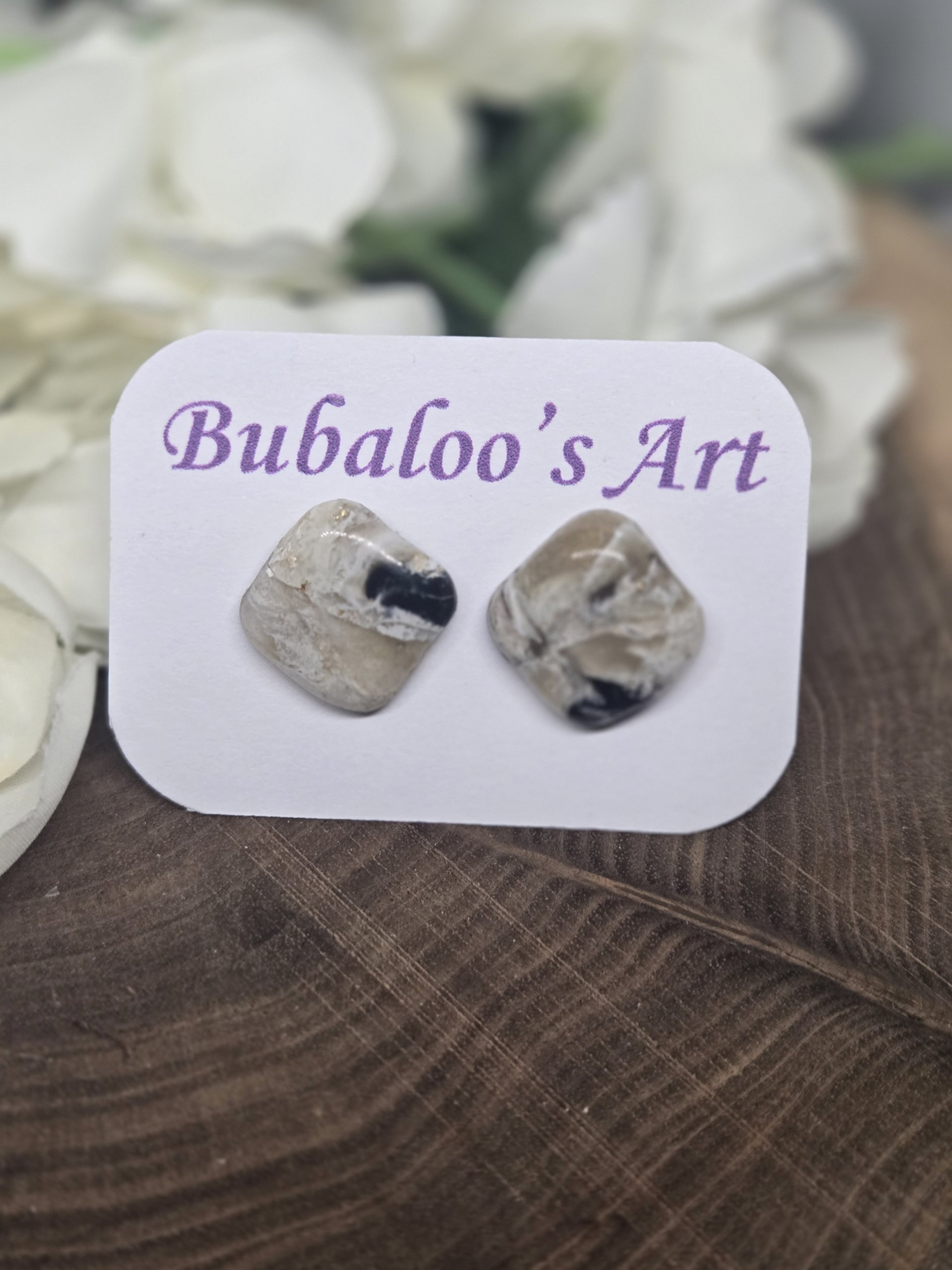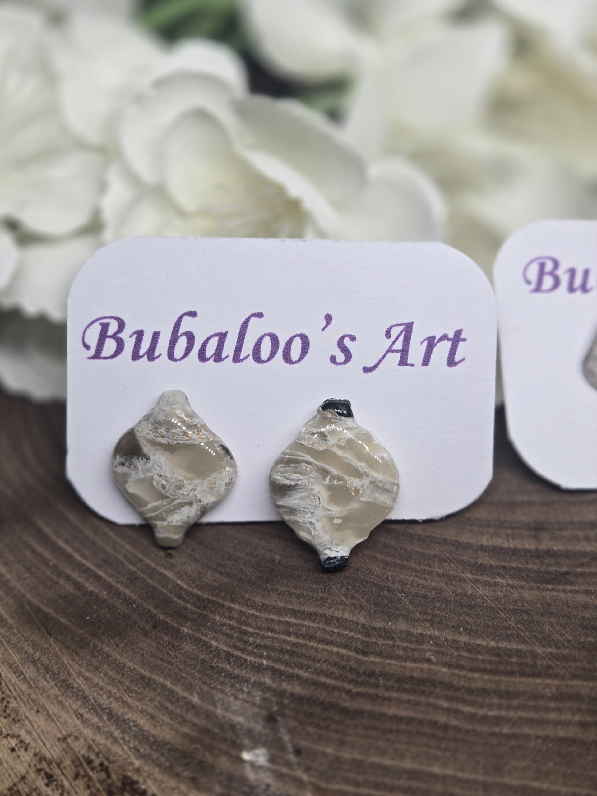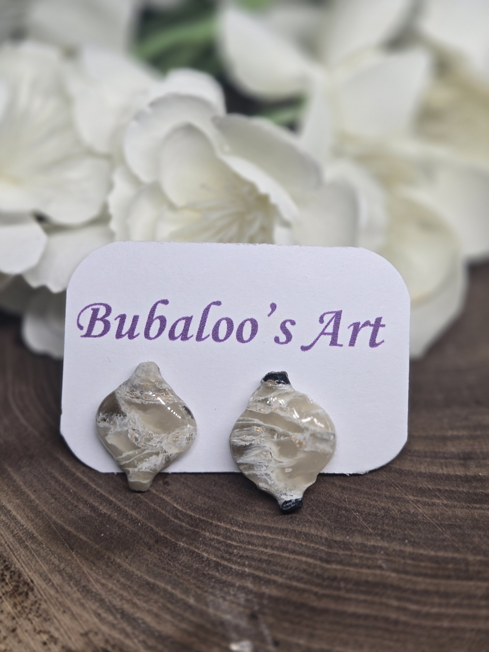 Tan, Black and Gold Polymer Clay Stud Earrings A71