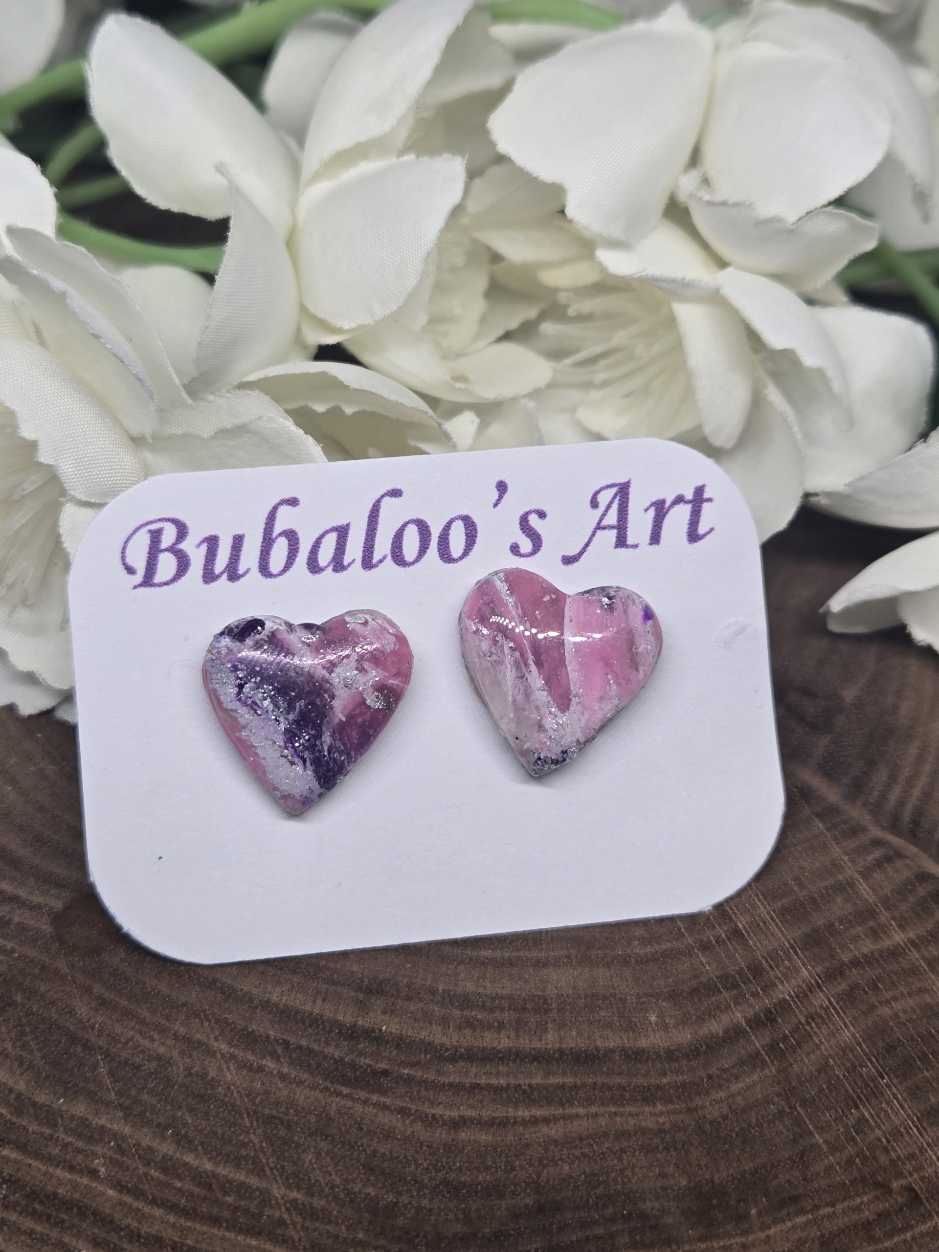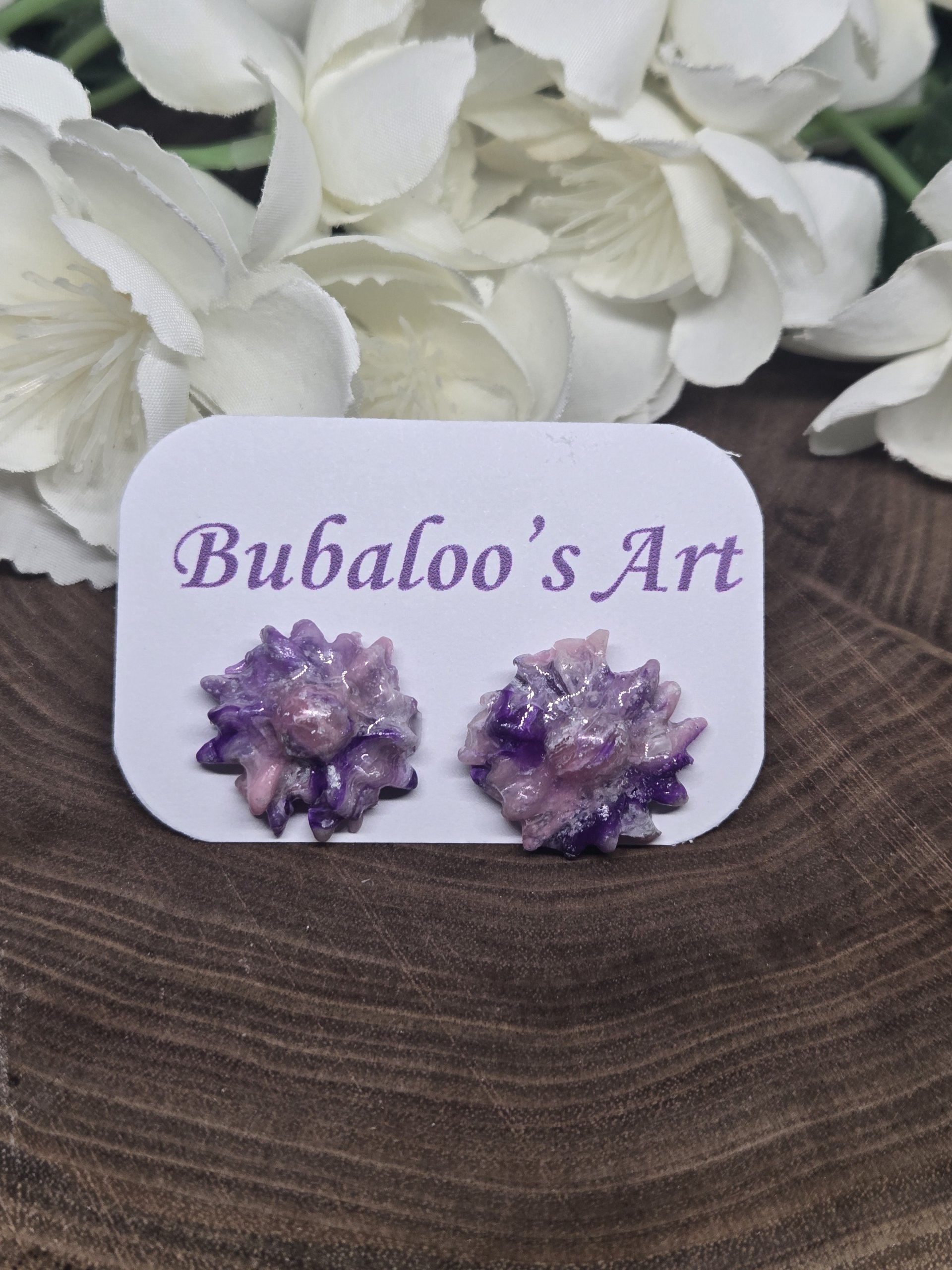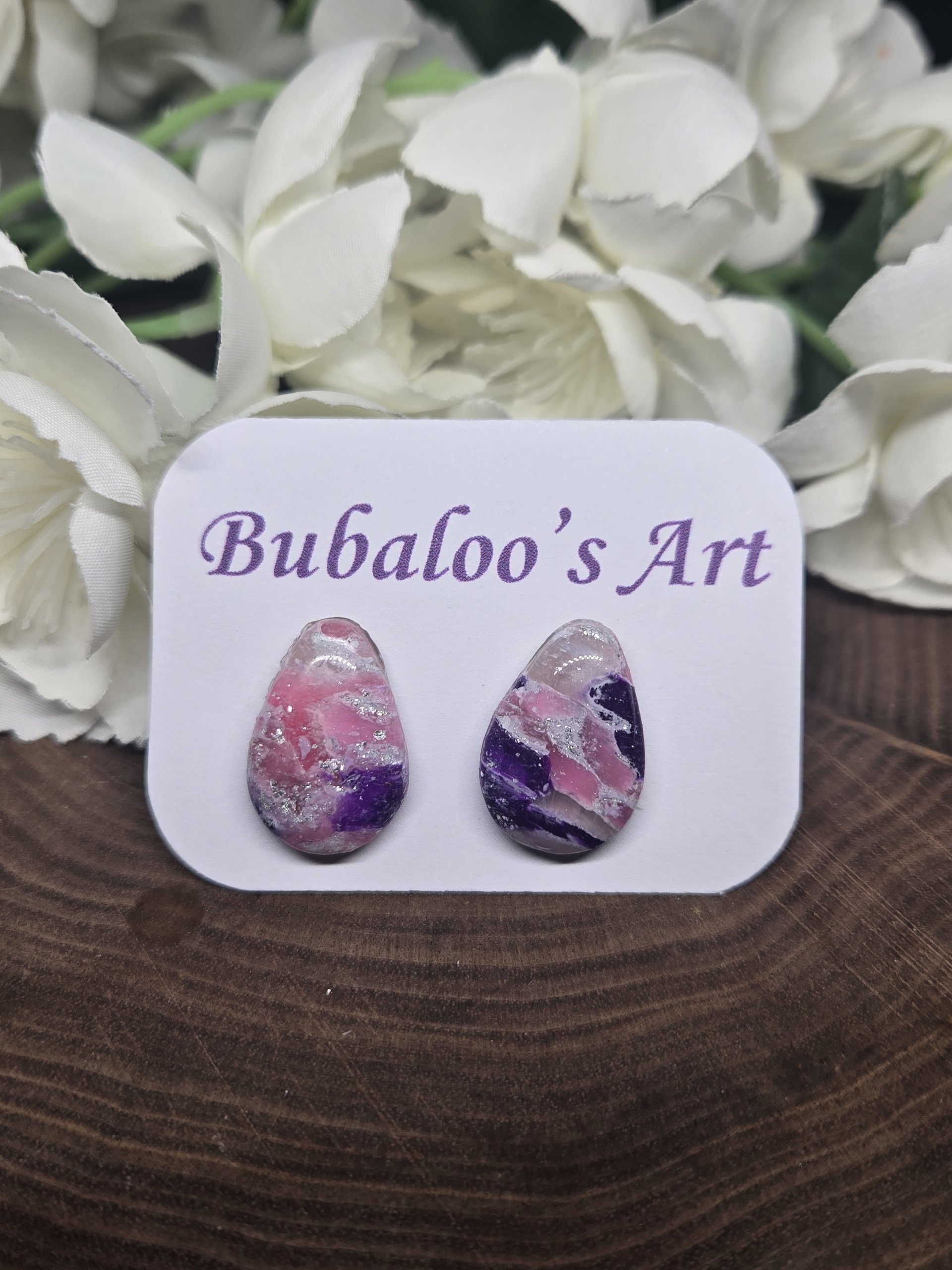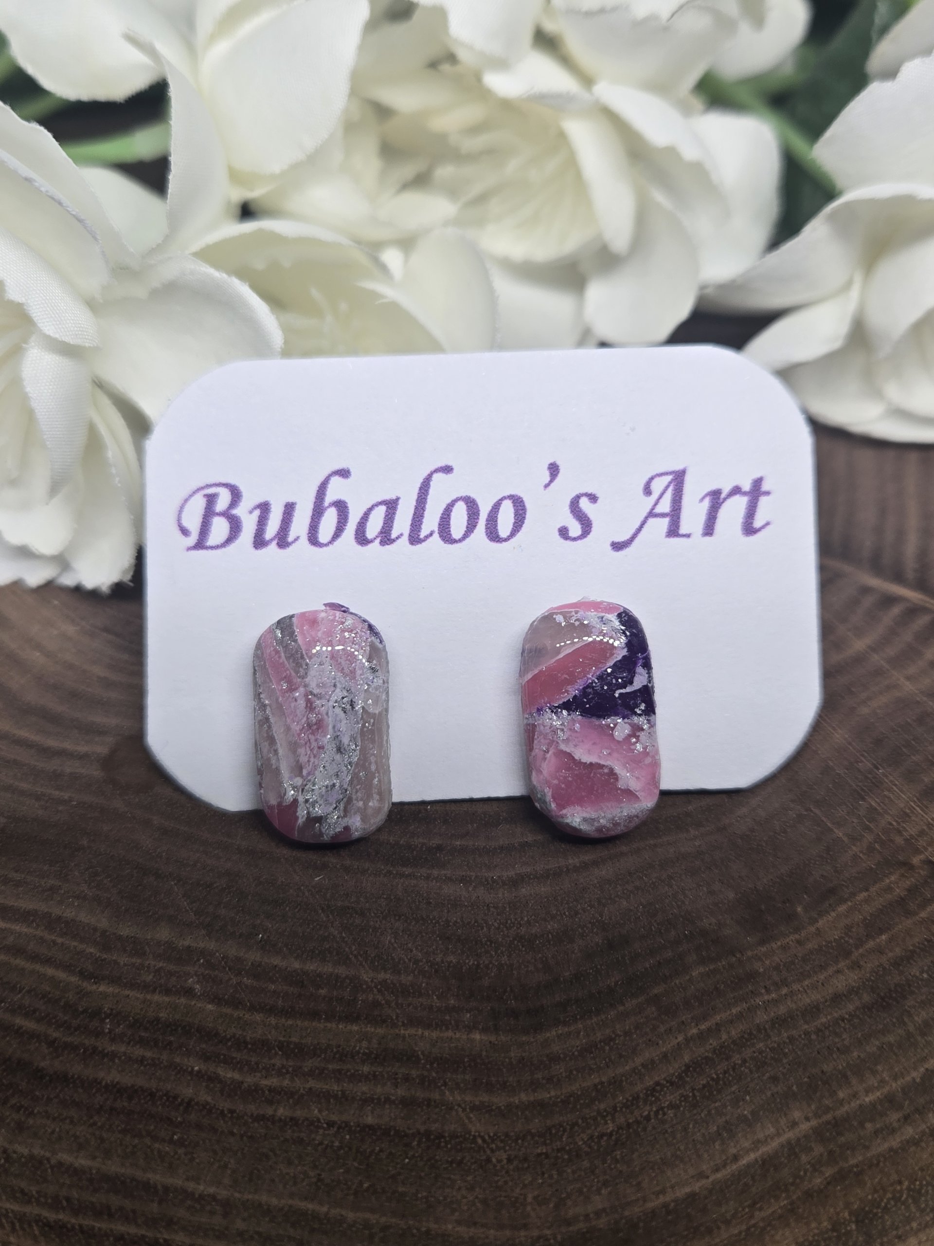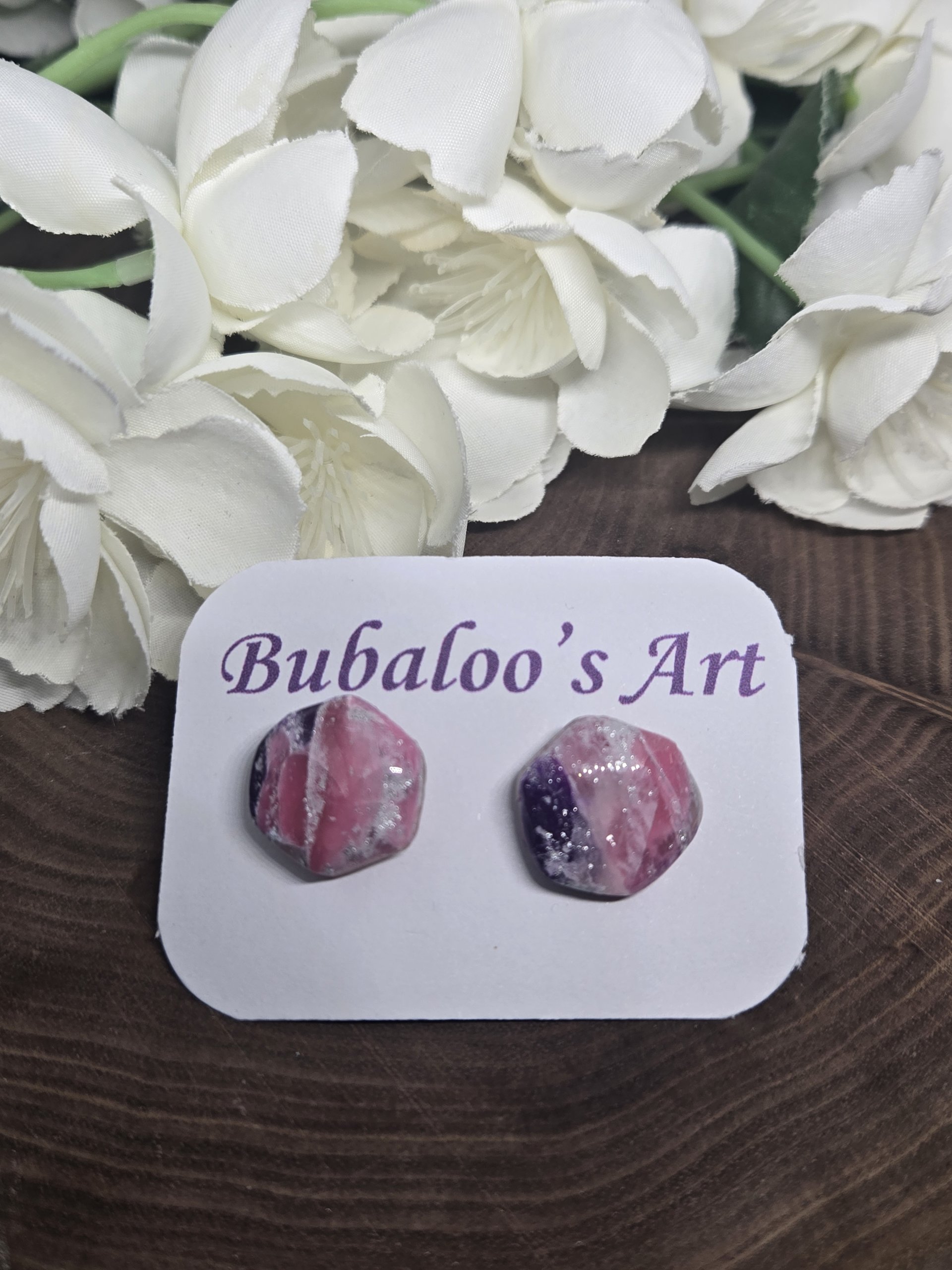 Purple & Pink Polymer Clay Stud Earrings ~ Bubaloo's Art A51