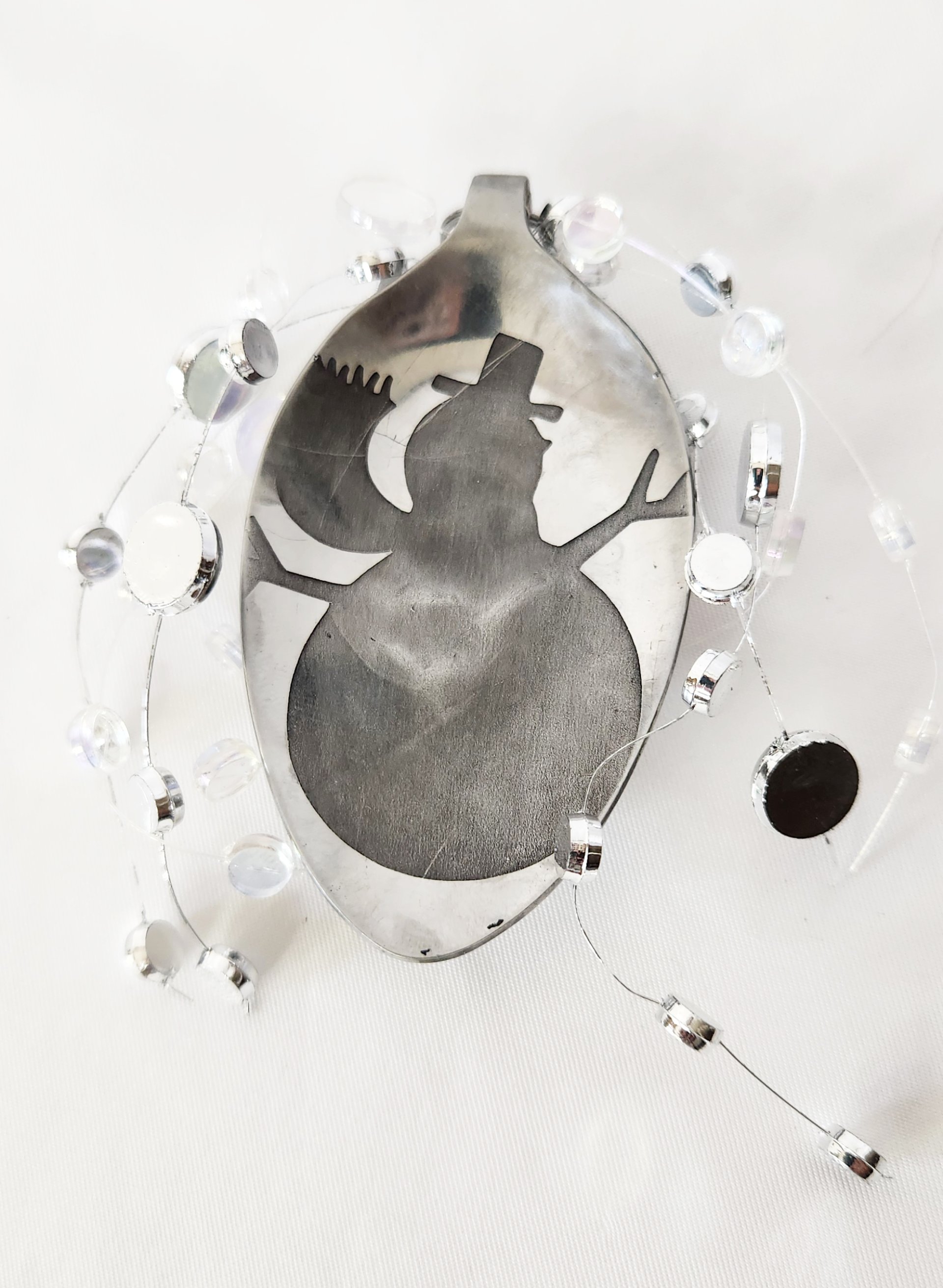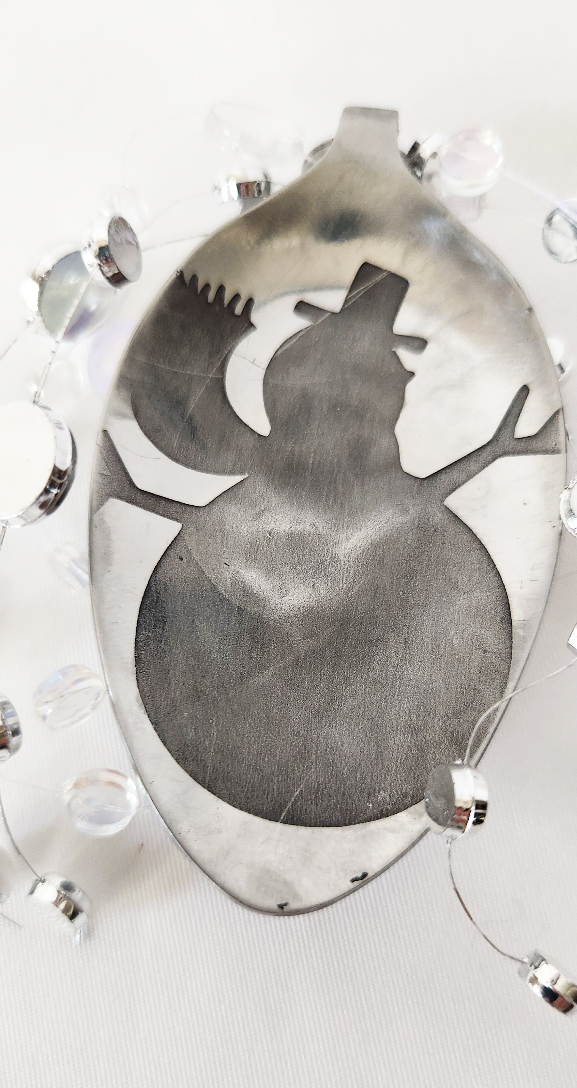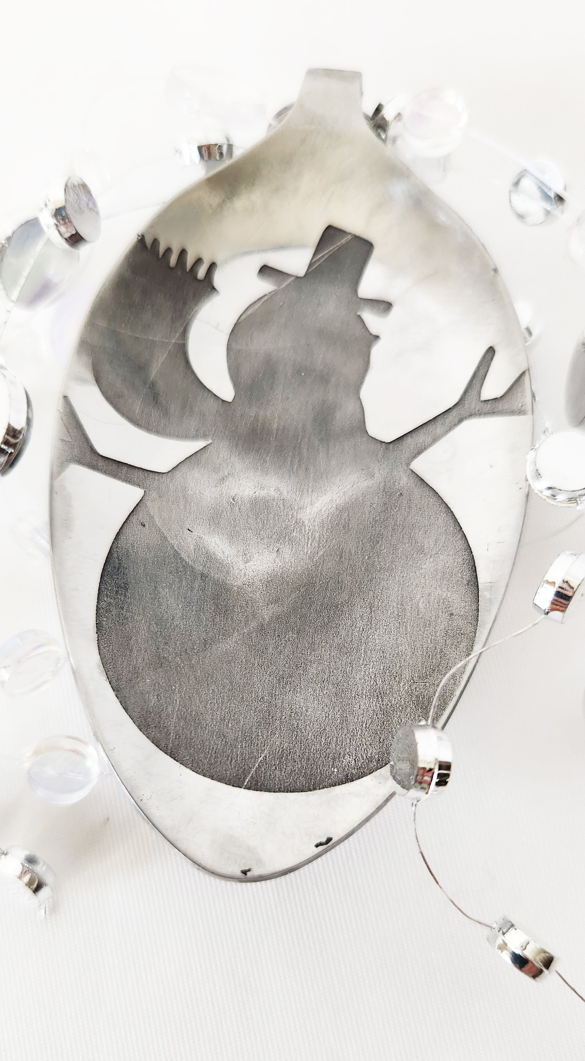 Etched snowman with glimmering mirrored circles feels like a winter wonderland. With great care, we have passionately etched each metal piece, pouring our heart and soul into every detail. We lovingly clean, sand, and polish them, revealing the breathtaking beauty of the design that lies within, as if awakening a hidden treasure that yearns to shine brightly in the light.