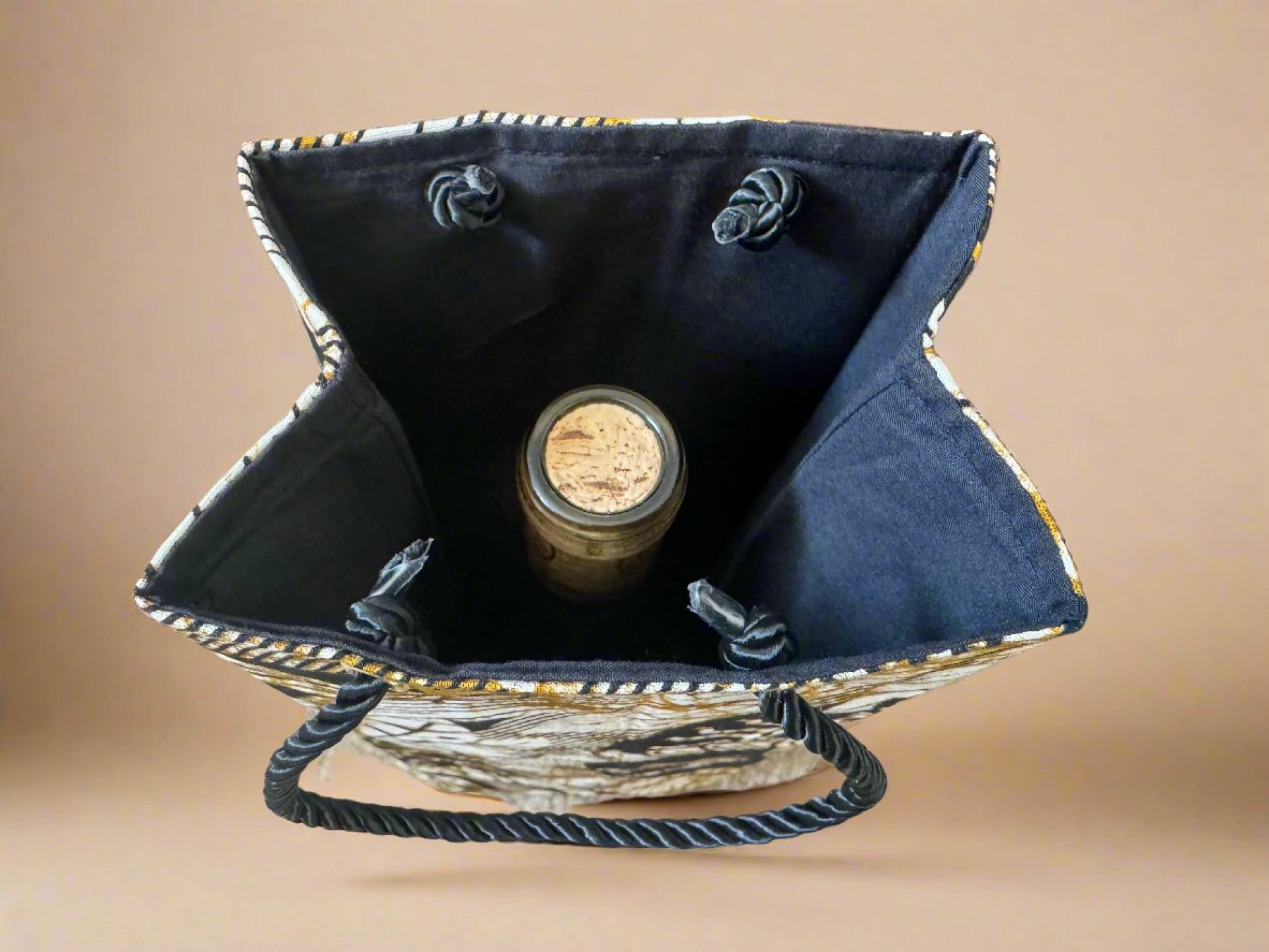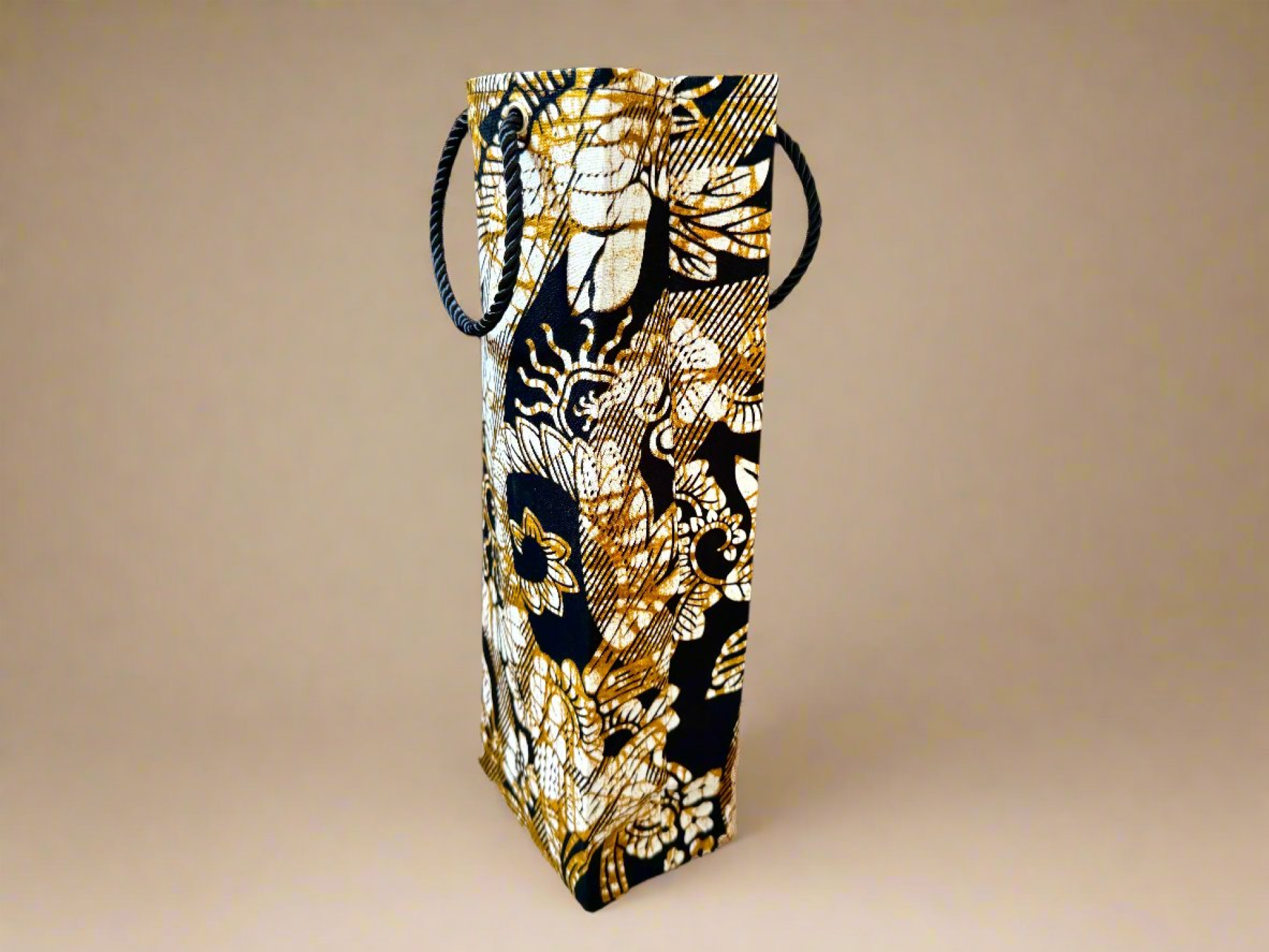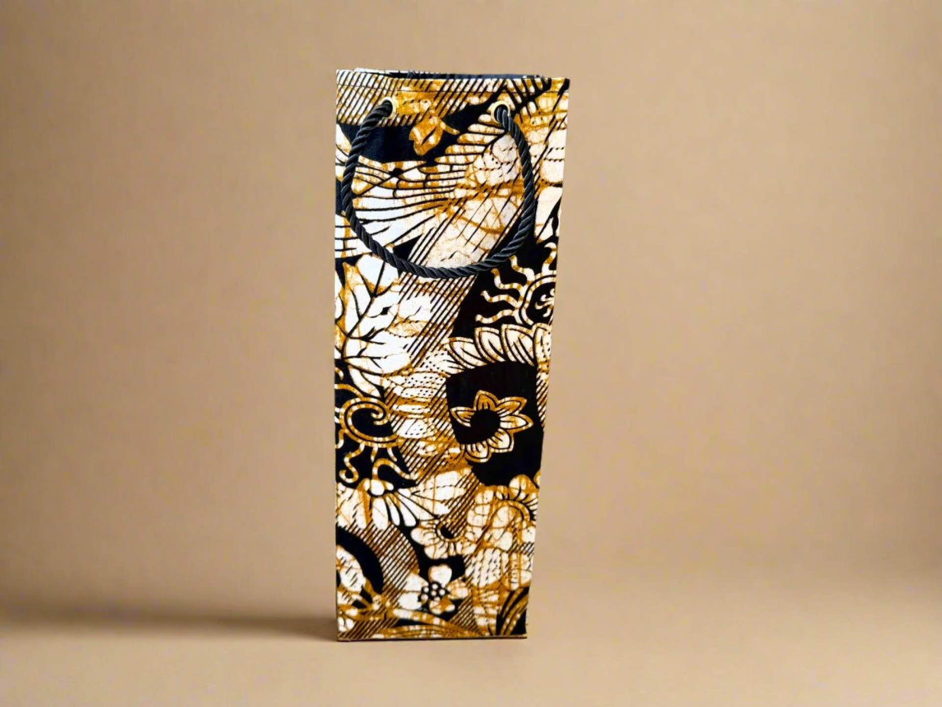 Make your wine gifts stand out with our African Wax Print Fabric Wine Gift Bag. Measuring 13” x 4” x 3”, it’s sized to fit an average wine bottle , this bag is crafted with care and inspired by Africa’s rich cultural heritage. It’s reuseable and eco-friendly making it the perfect choice for birthdays , weddings or holiday dinners, adding sophistication and thoughtfulness to your gift.