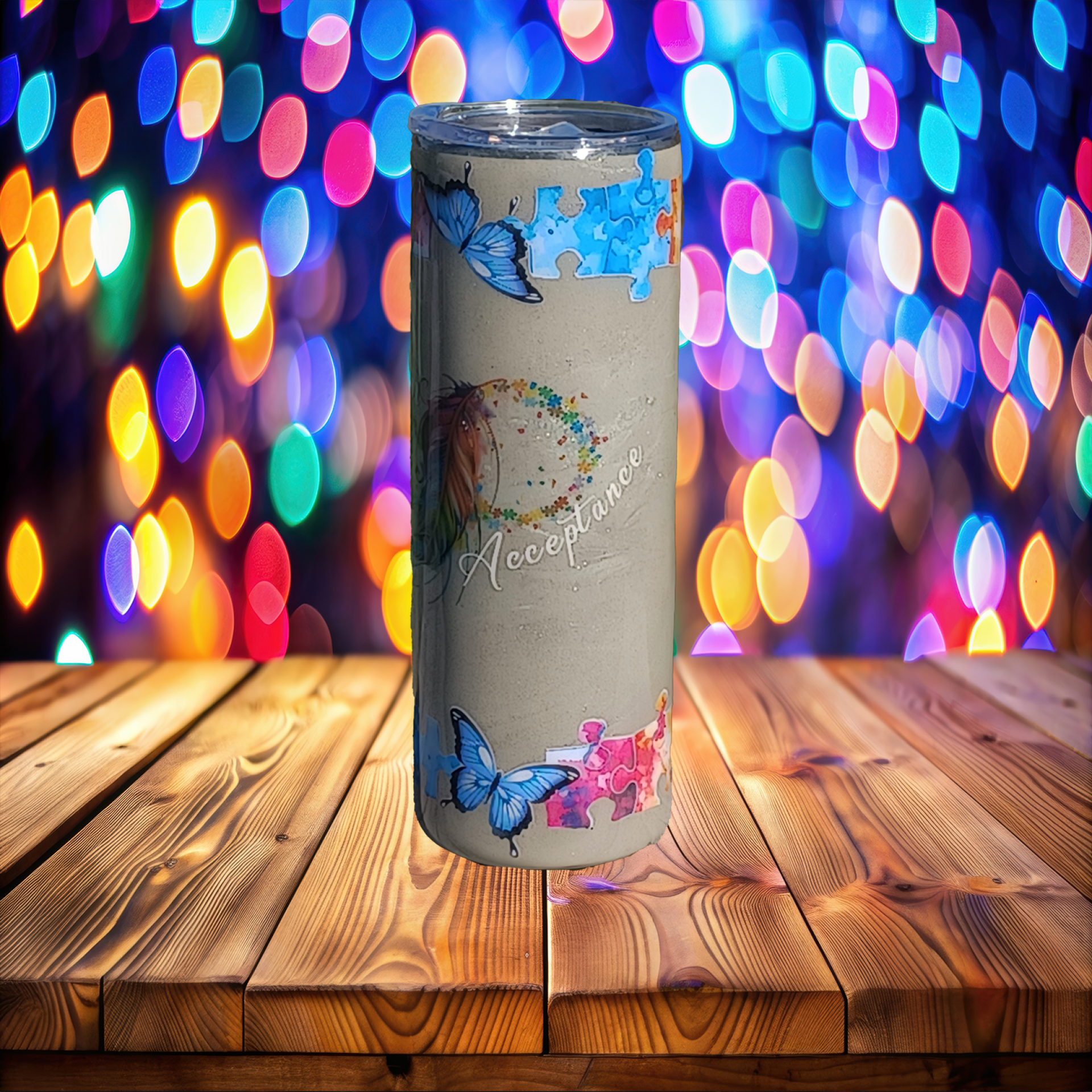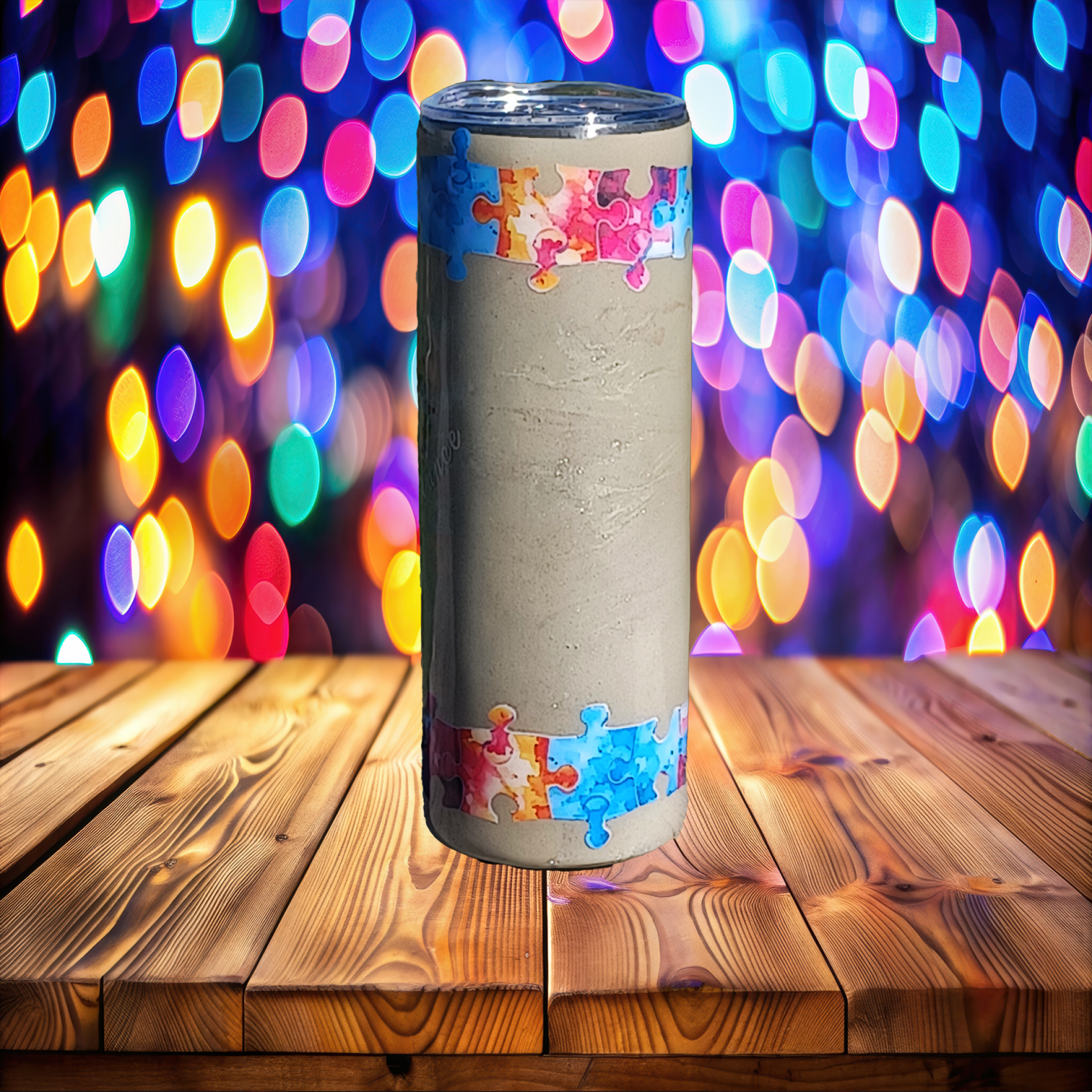 This handcrafted tumbler speaks to the strength, resilience, and vibrant individuality of those on the autism spectrum—and the love that surrounds them. Whether you're a parent, teacher, advocate, or proud supporter, this cup is a daily reminder that different is not less—it's beautifully unique.