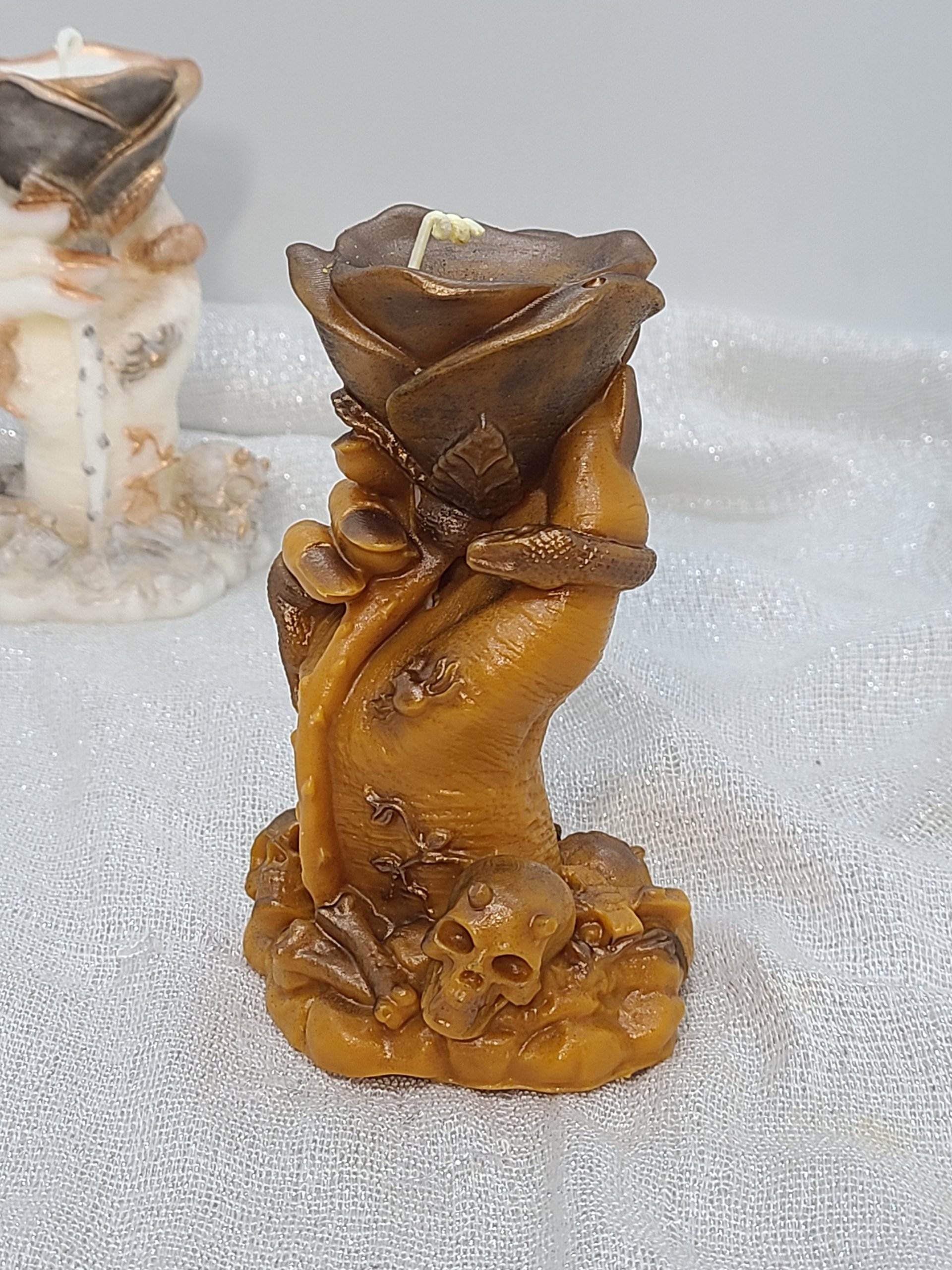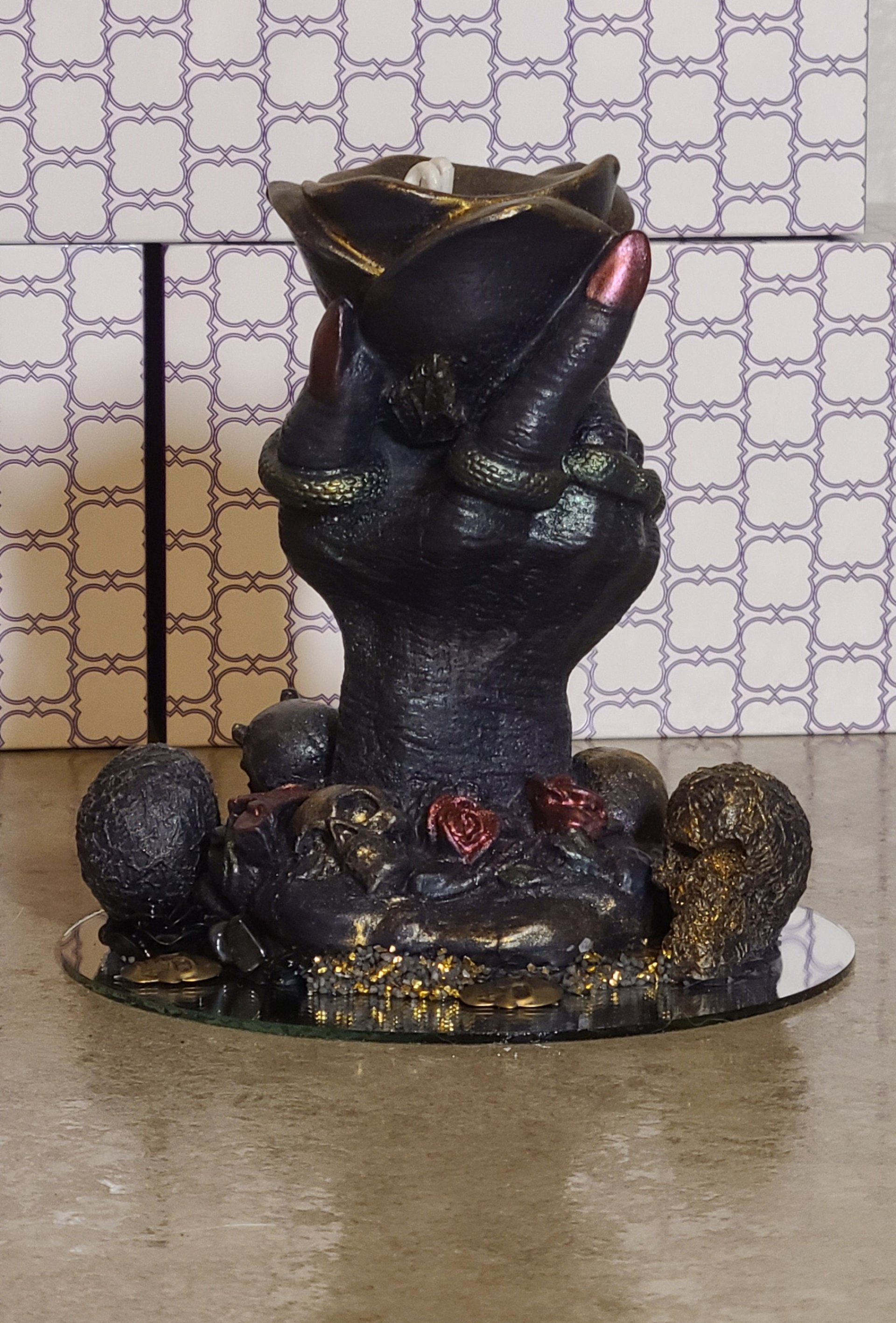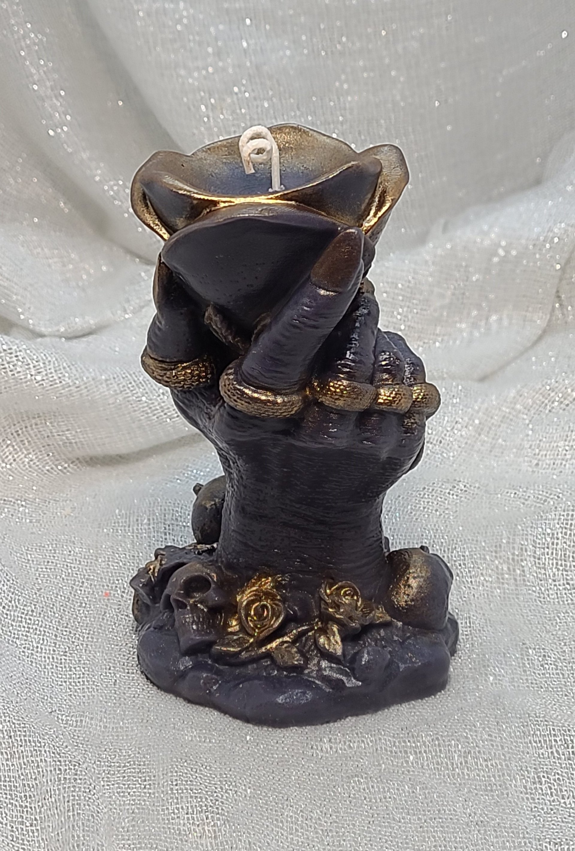 Shaped like a long-nailed hand holding a rose with a snake wrapped around it, the Witch's Rose candle is sure to please!
