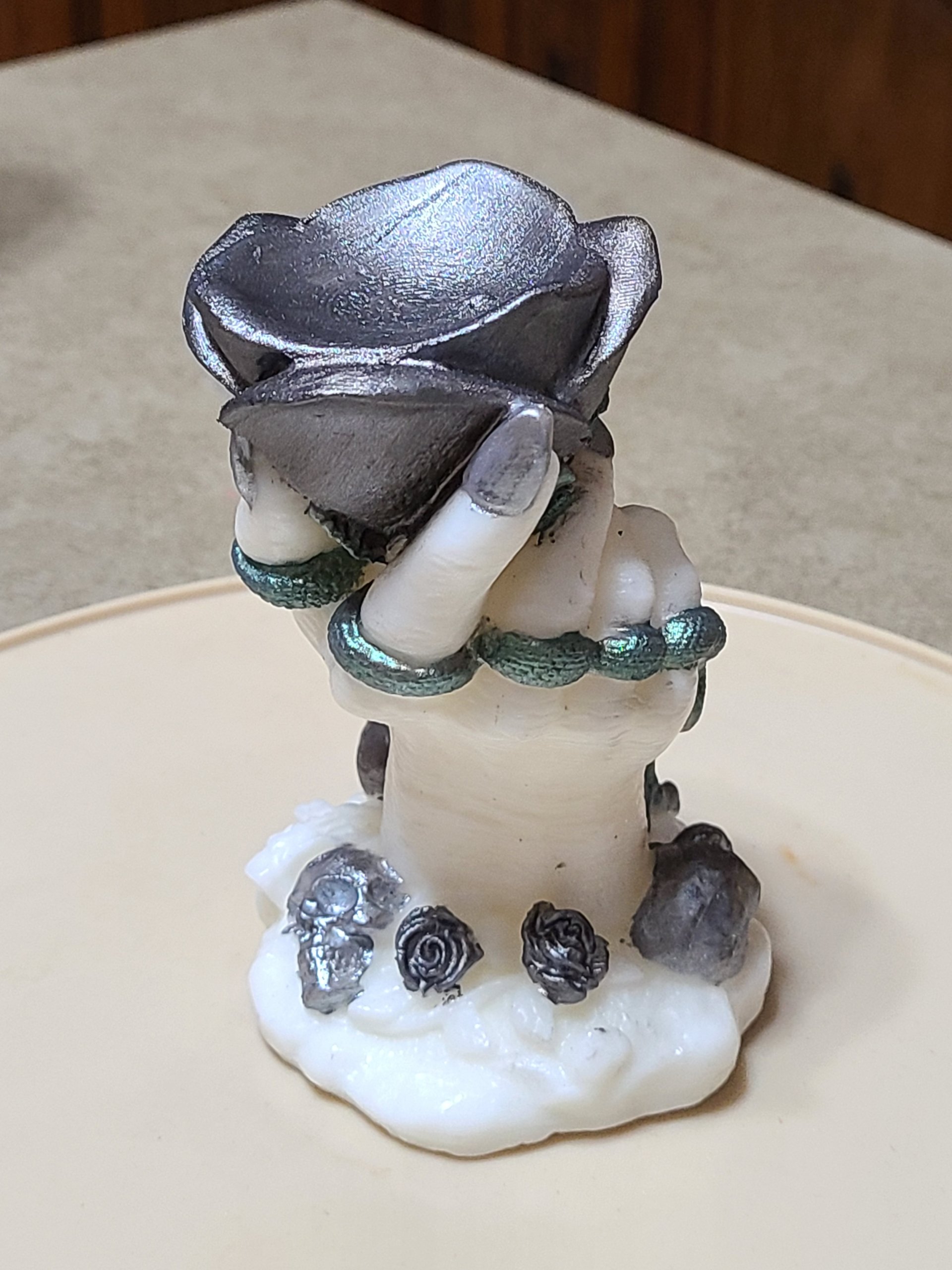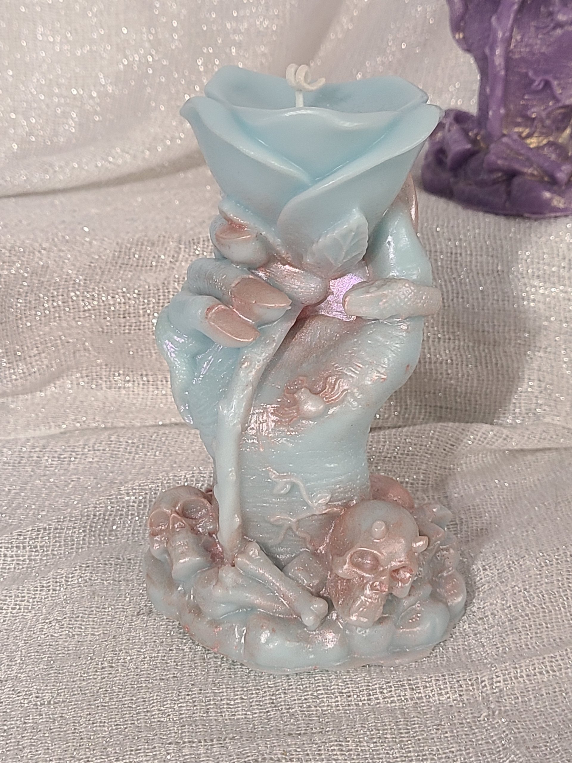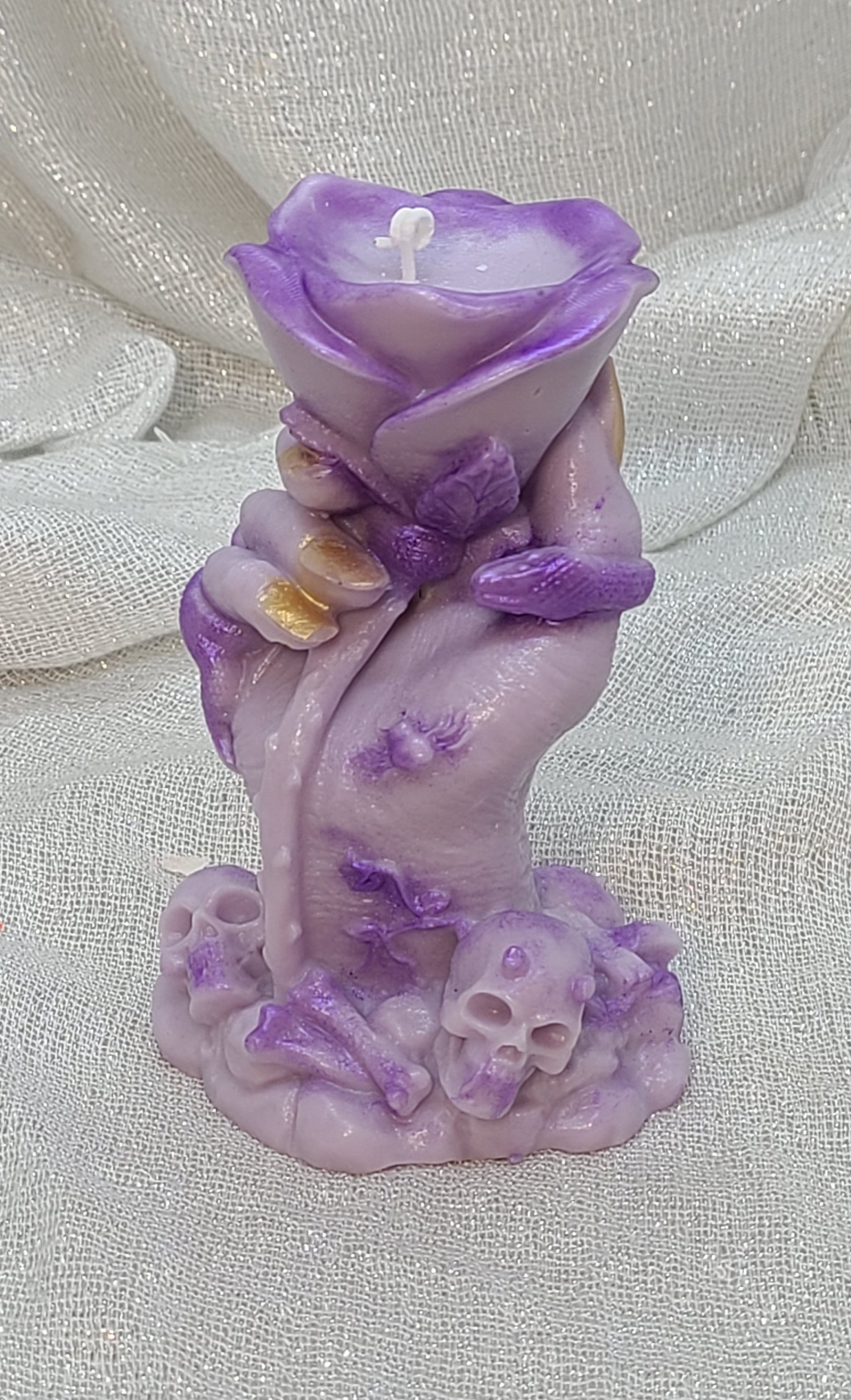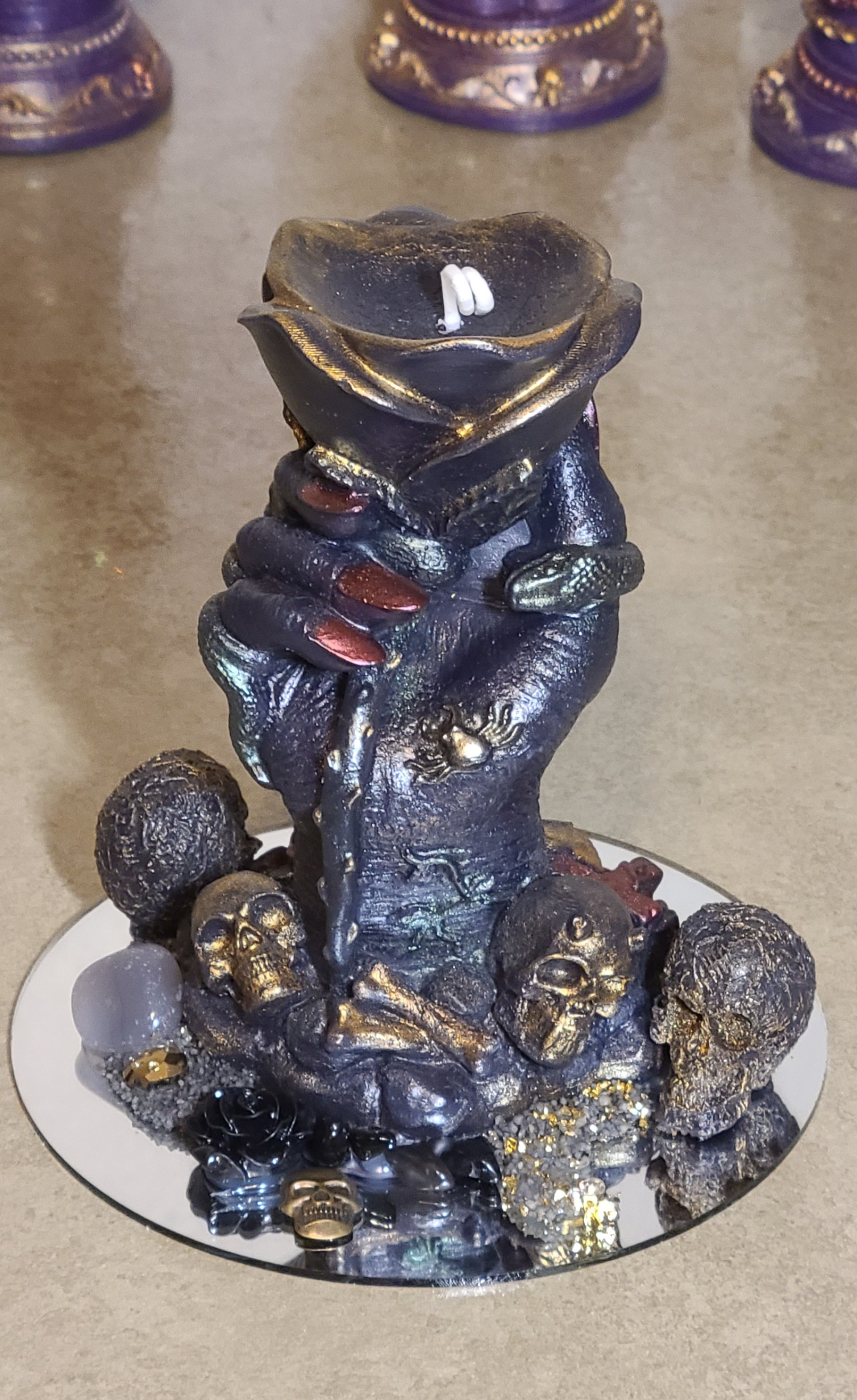 Shaped like a long-nailed hand holding a rose with a snake wrapped around it, the Witch's Rose candle is sure to please!